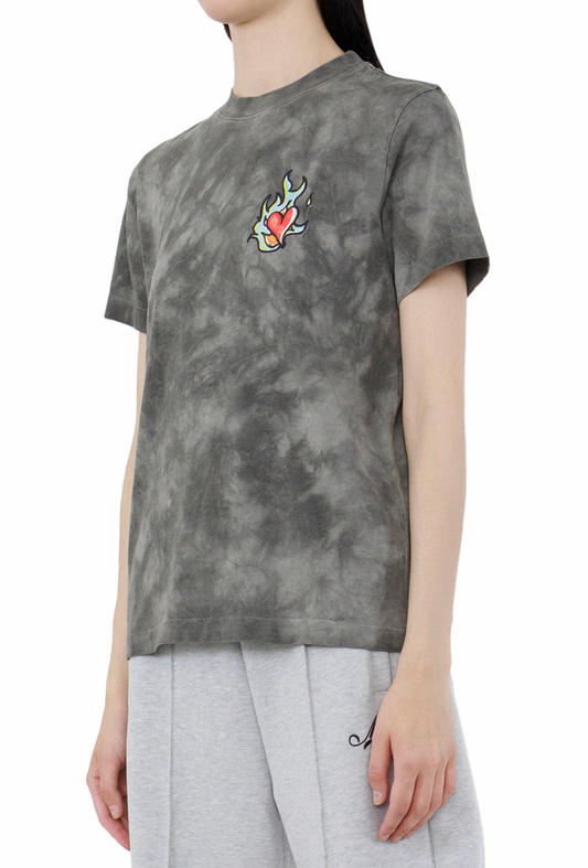 Grey Tie-Dye Heart Print T-Shirt