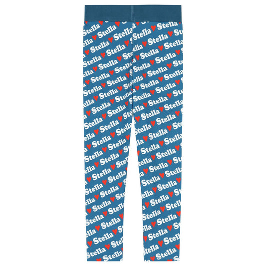 Girls Blue Logo Heart Leggings