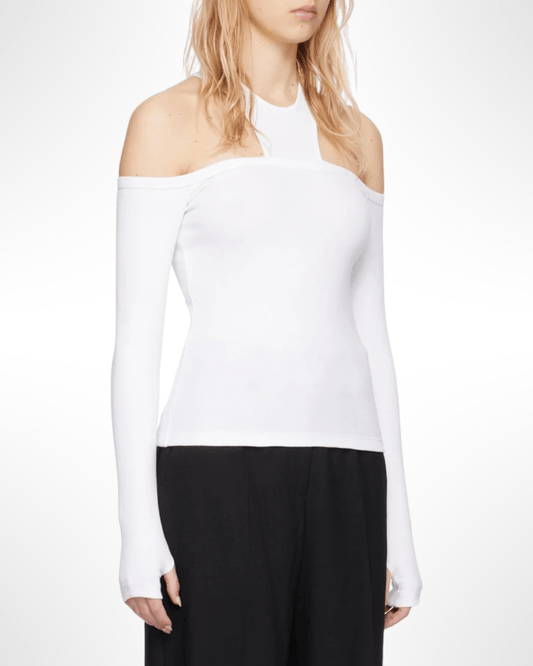 White Cutout Long Sleeve T-Shirt