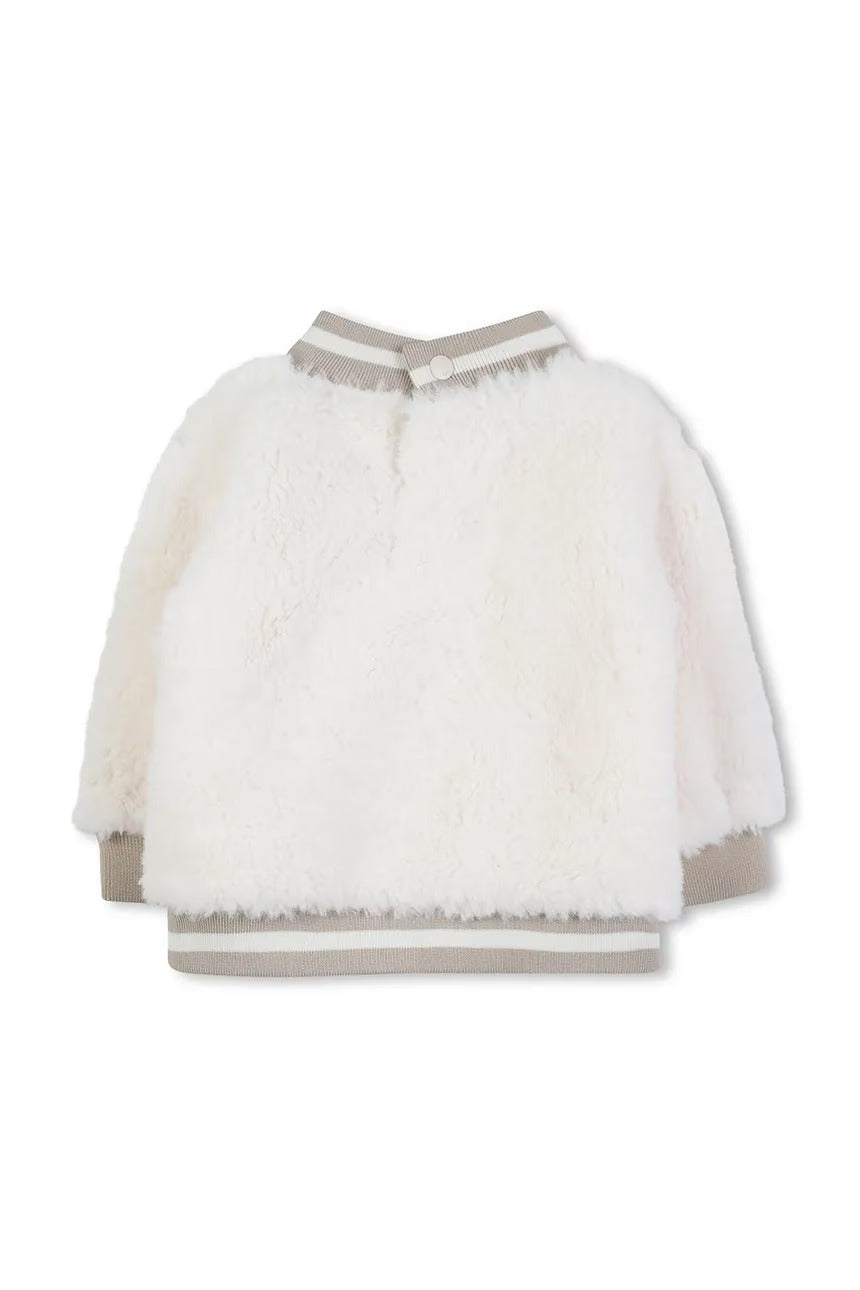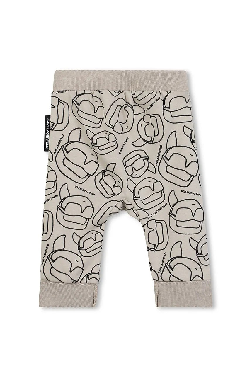Комплект от две части, бяла пухена блуза с Карлито и бежово долнище с принт Карлито.