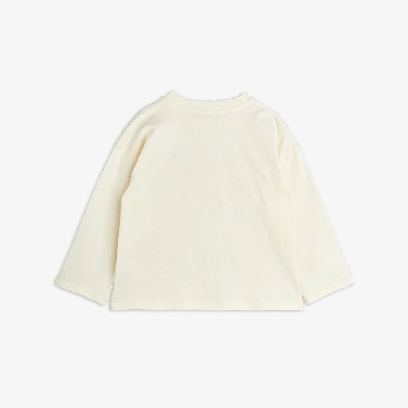 Бяла блуза с дълъг ръкав, принт от голямо червено сърце.
