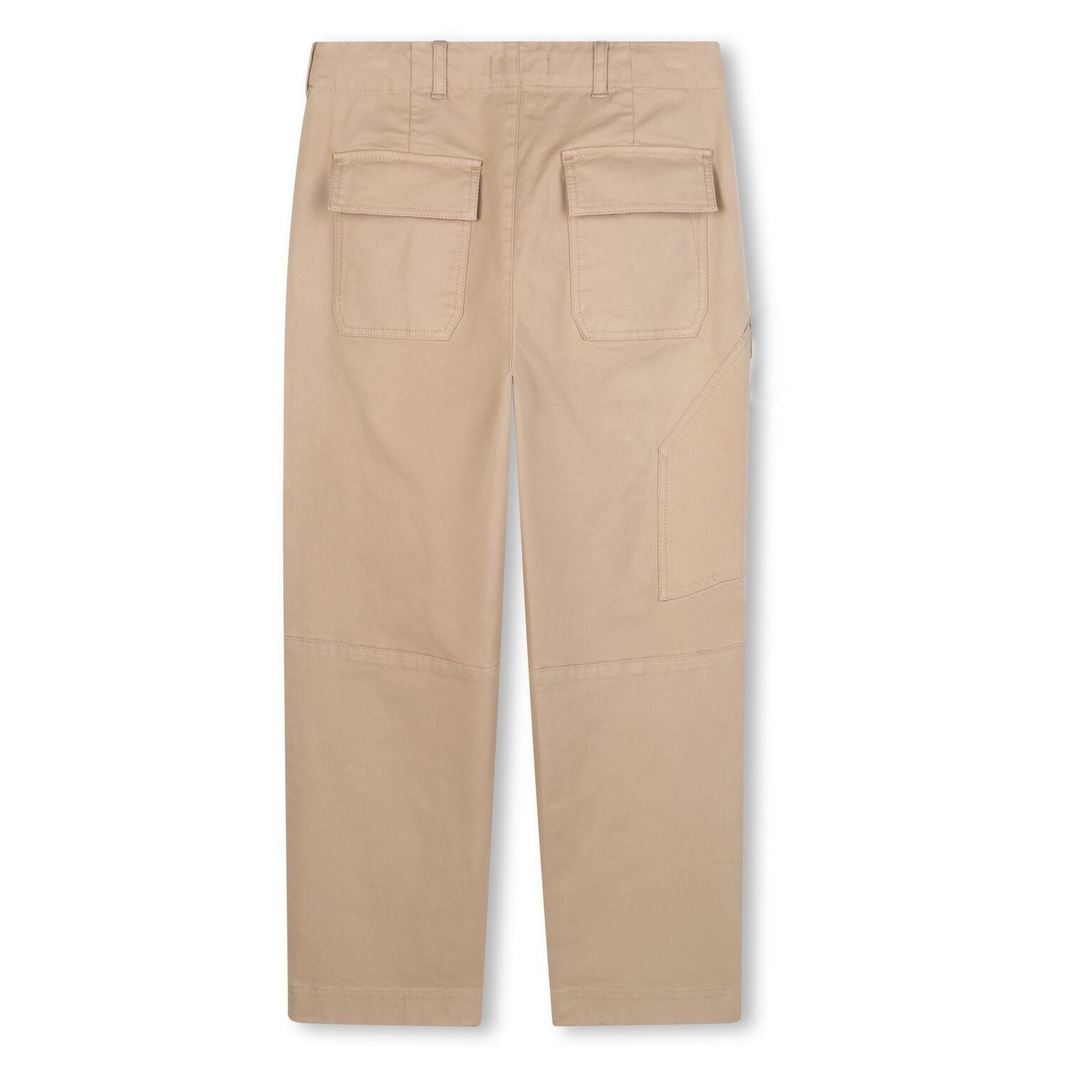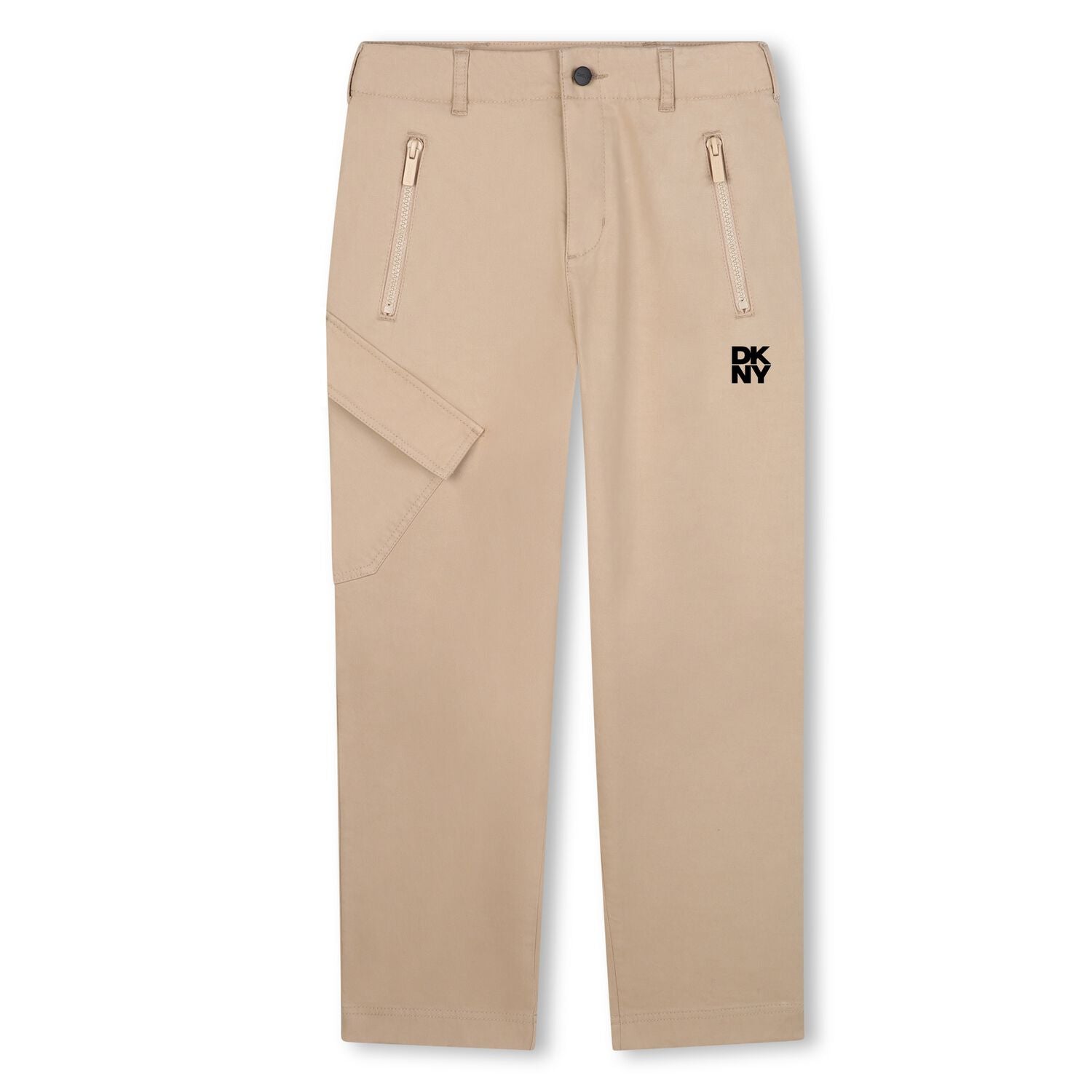 Бежов панталон, малко черно лого. Джобове с ципове и голям страничен джоб.