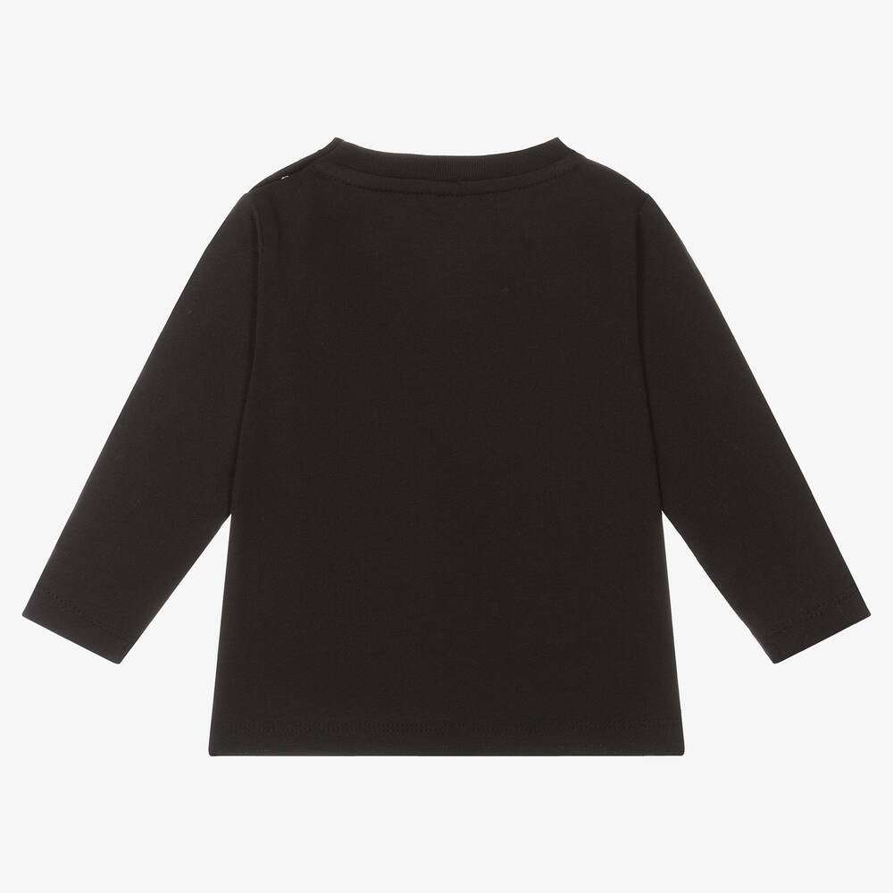 Черна блузка с дълъг ръкав, апликация пингвин, голям бял кръг, надпис, лого. Щракащи копчета на гърба за допълнителен комфорт при обличане/събличане.