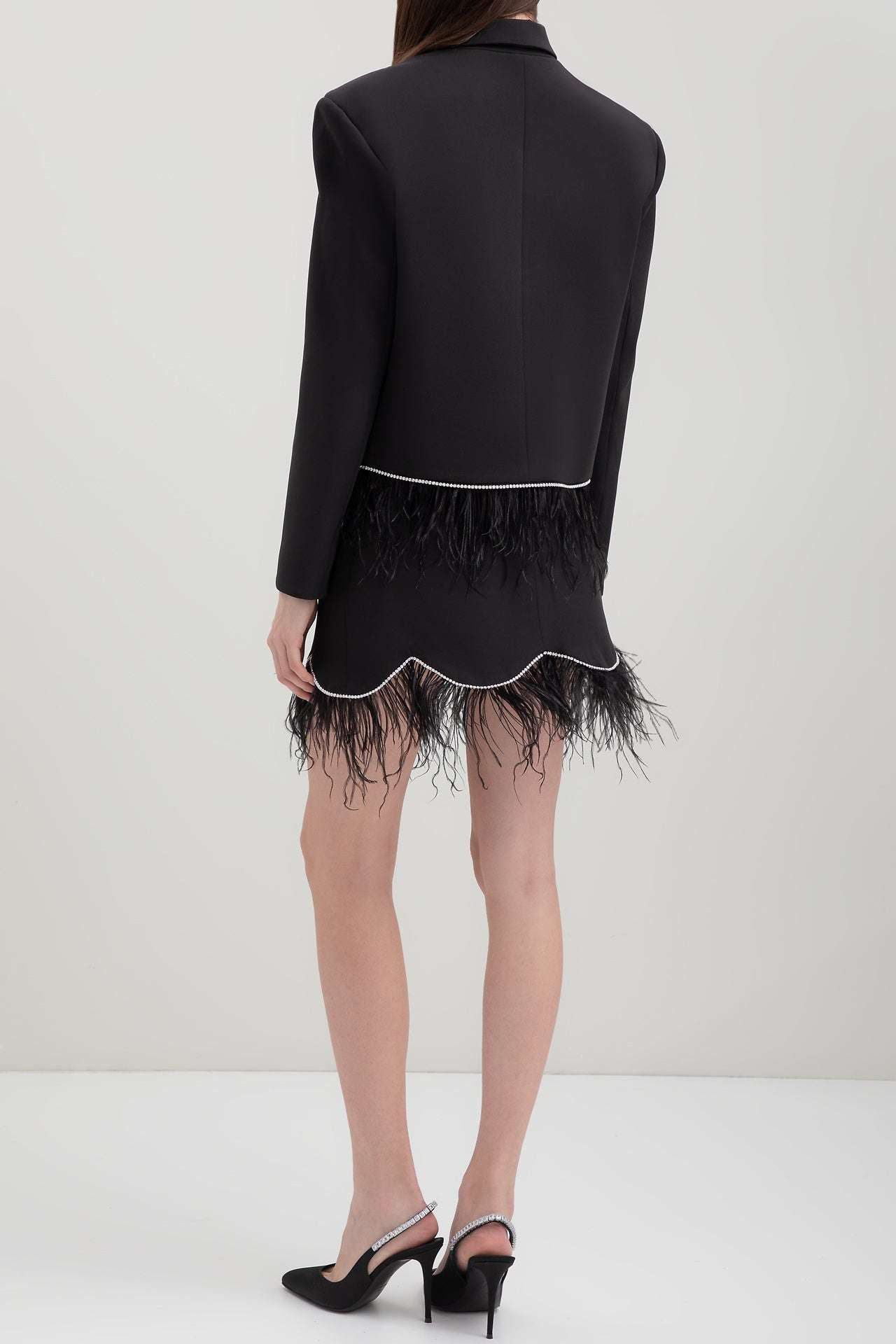 Черно късо елегантно сако със завършек пера. Красив детайлот блестящи кристали в долната част на модела. Made in Italy.