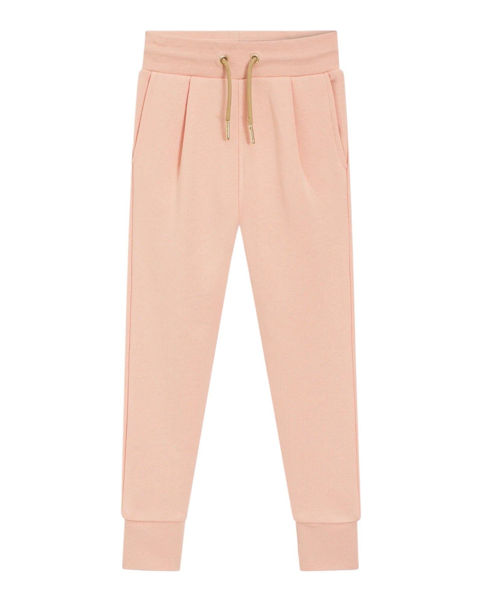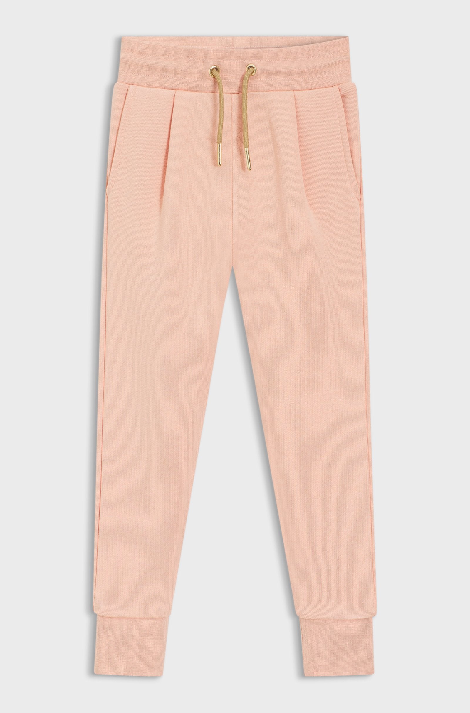 Розово спортно долнище, кафяви връзки.