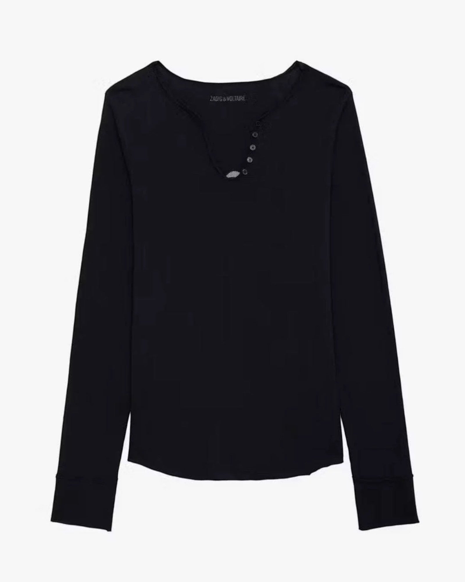 Тъмносиня блуза с дълъг ръкав. Бродерия от цветя на гърба.