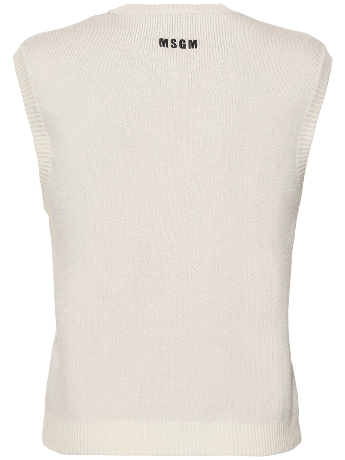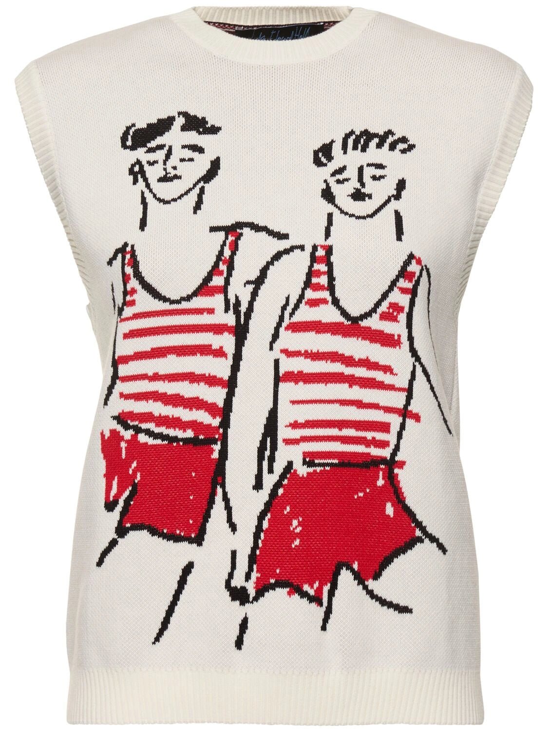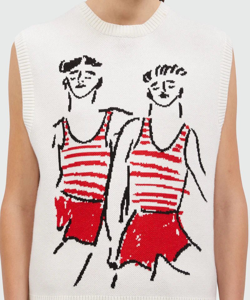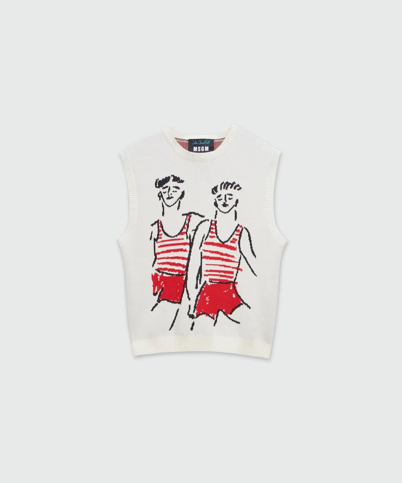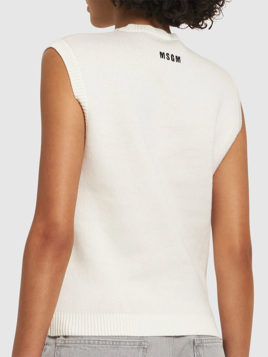 Памучен топ без ръкави с нарисувана апликация. Малко черно лого на гърба.