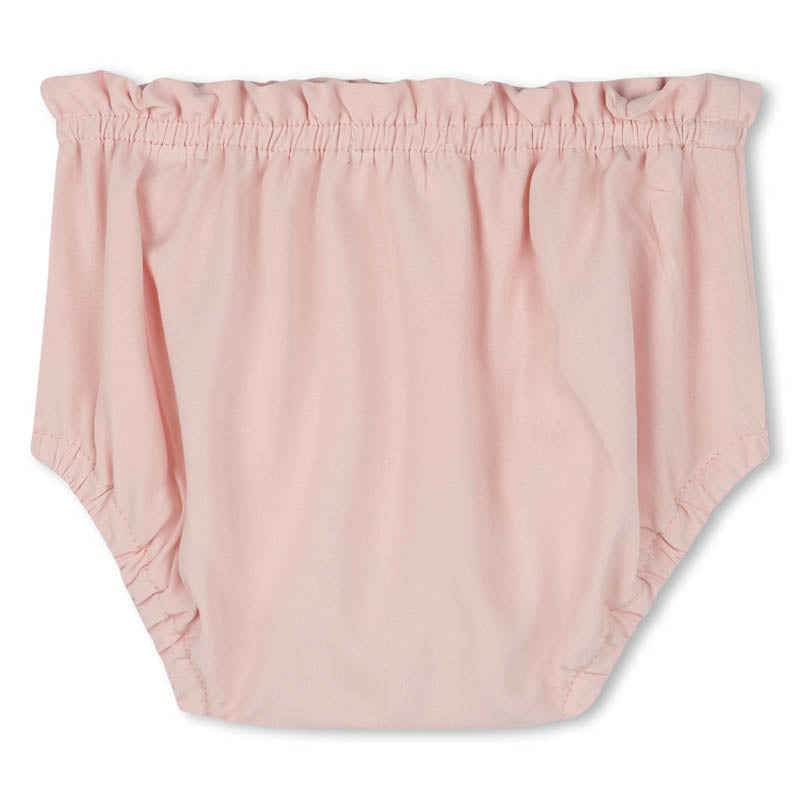 Бебешка рокля с розова тюлена долна част и розови гащички. Апликация с калинка.