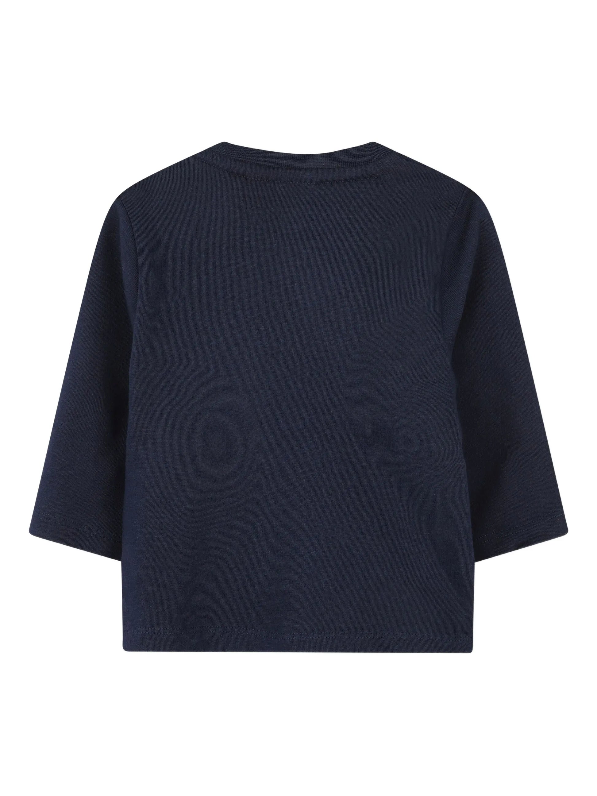 Тъмносиня блуза с дълъг ръкав, светлосиня апликация с лого.