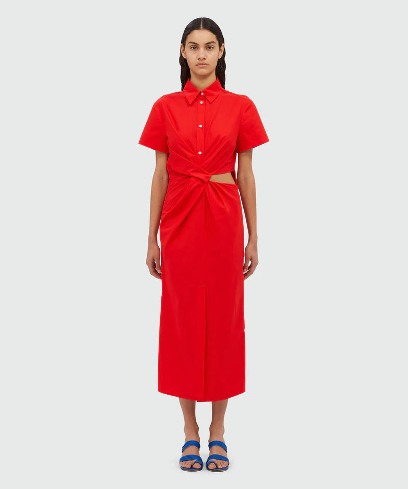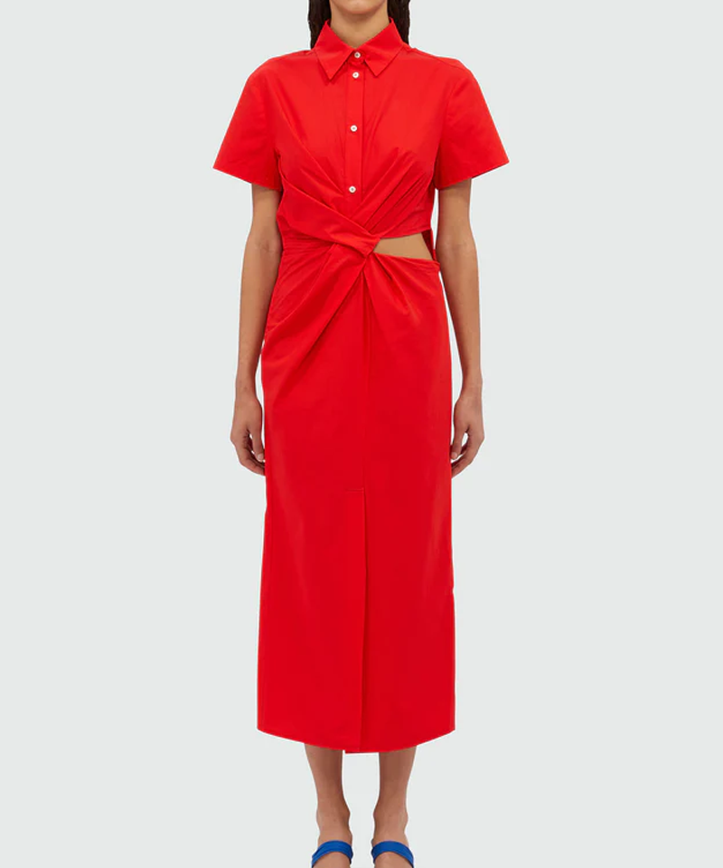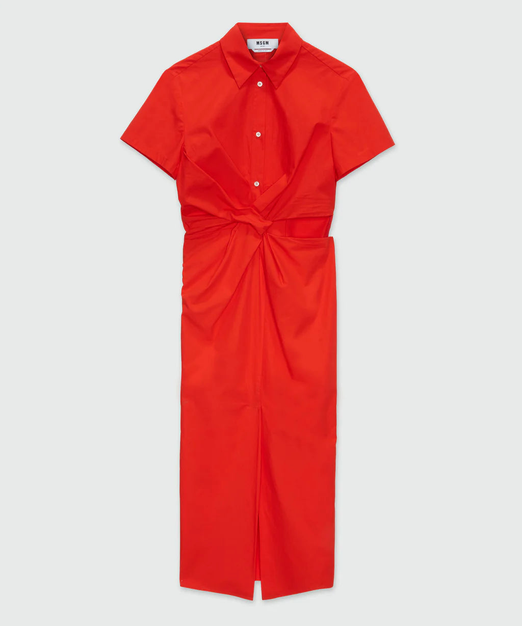 Red Cotton Midi Dress