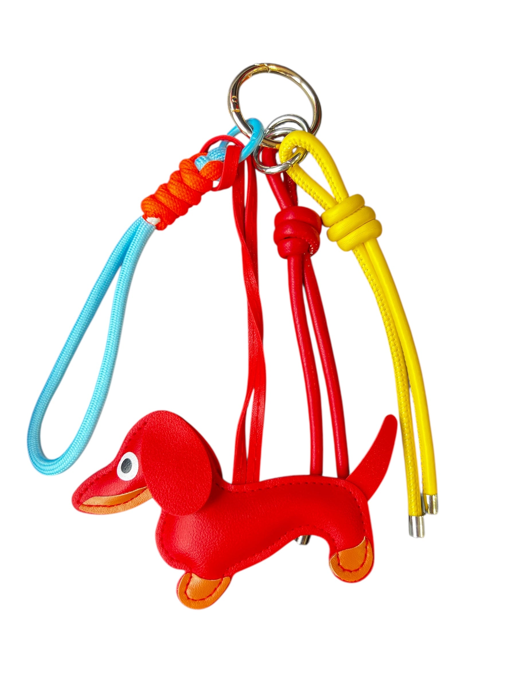 Комбинация от висулки за чанта в червено, синьо и жълто.