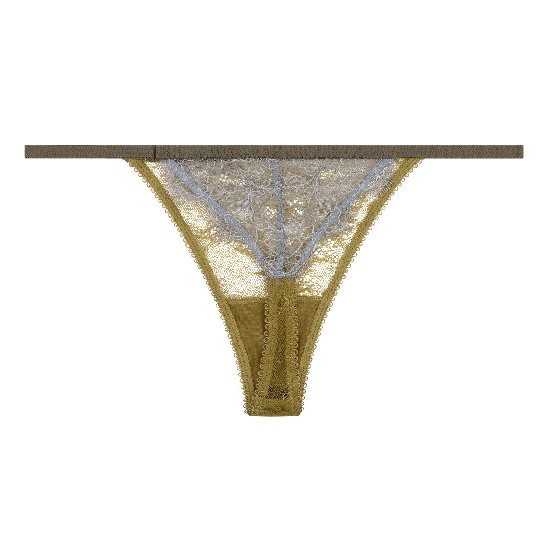 Зелена дантелена танга, синя дантела отзад.