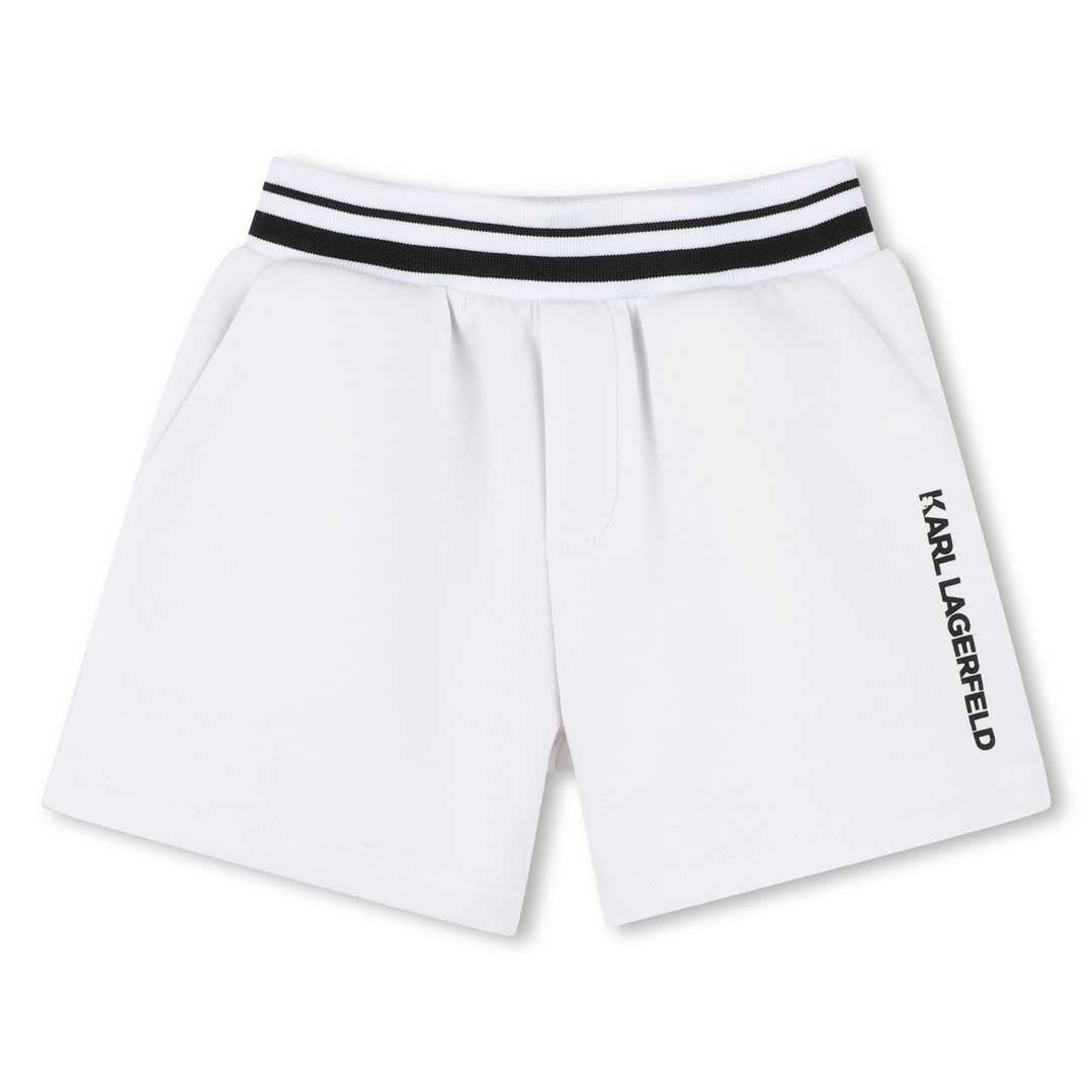 Комплет от две части. Синя риза с бяйло райе, джобче и емблема с Карлито. Бели шорти с ластик на талията.