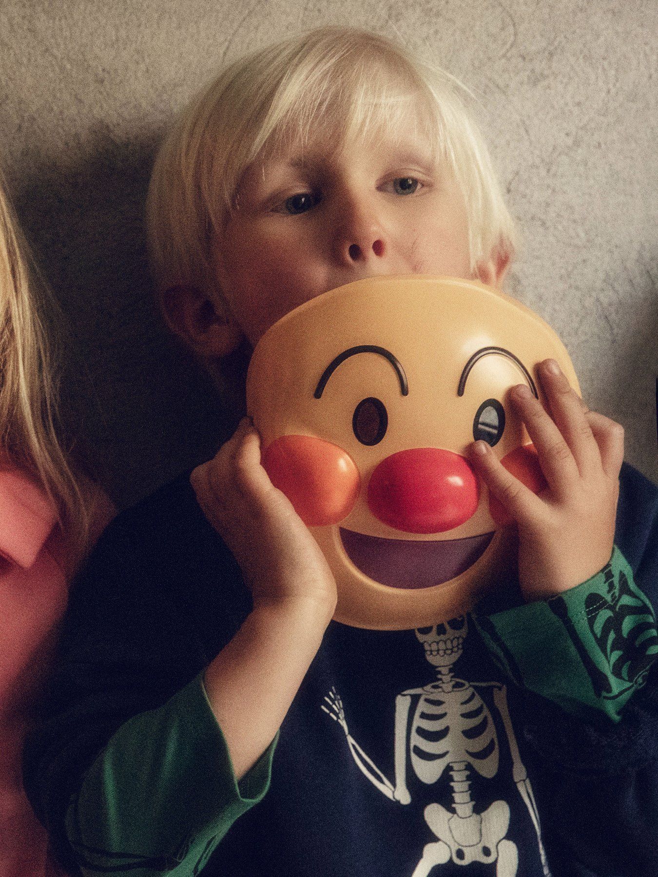 Тъмносин блузон, апликация със скелет.