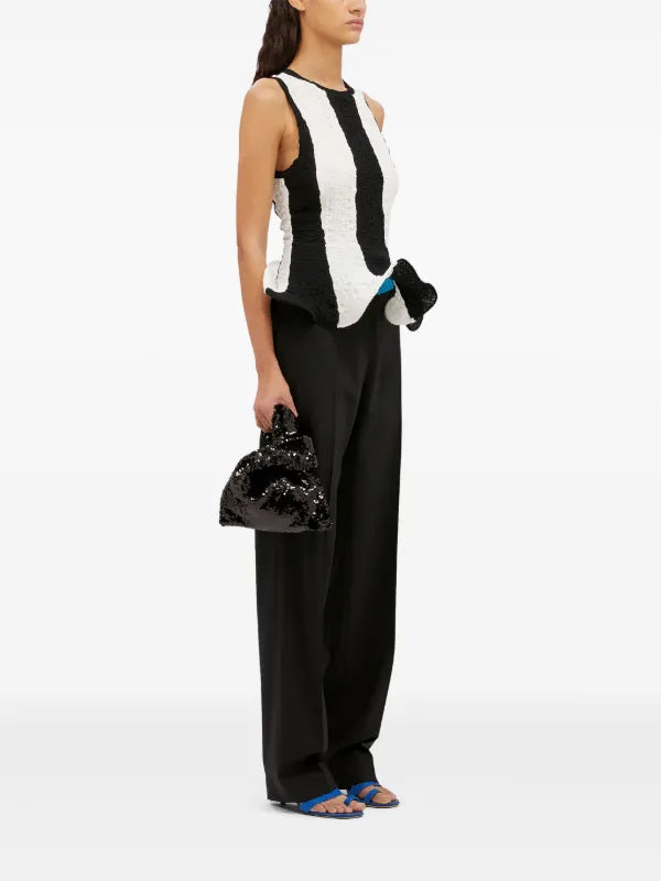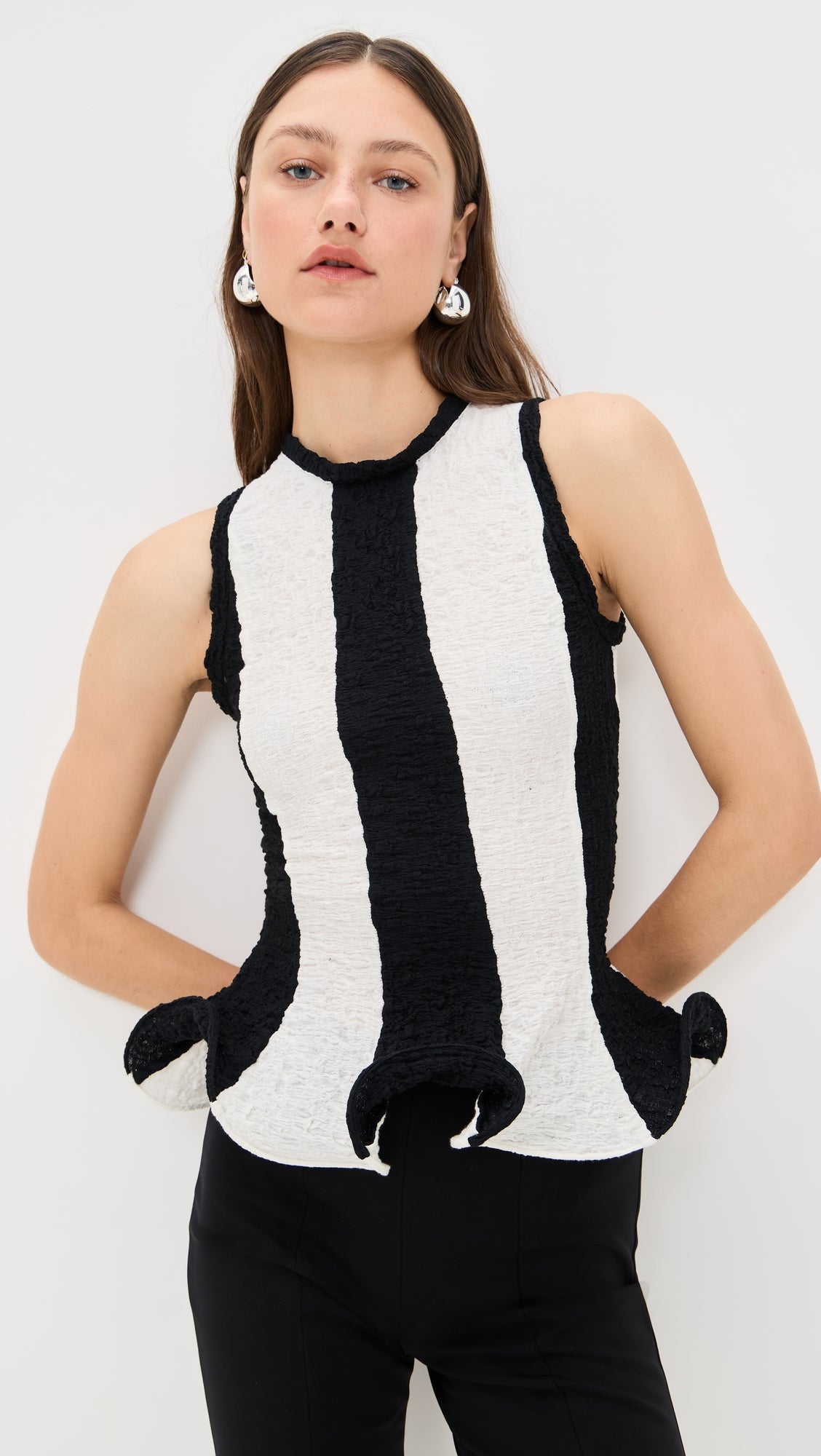 Черно-бял топ без ръкави. Структурирана харбала в долната част.