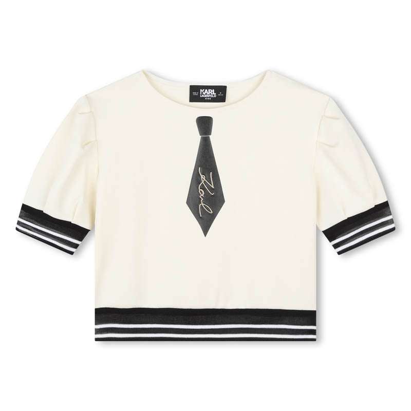 Блуза в цвят екрю, апликация от вратовръзка. Ръкописно златисто лого.